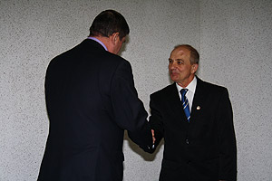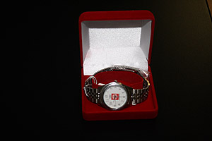 Сегодня снежинский тренер по дзюдо ДЮСШ «Олимпия» Владимир Михайлович Храмцов получил из рук главы Снежинска Анатолия Николаевича Тимошенкова наручные часы с изображением герба города на циферблате.