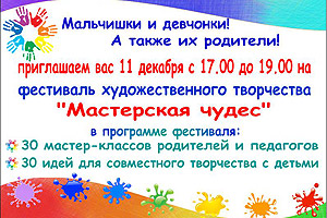 11 декабря, в преддверии Нового года, в дошкольном образовательном учреждении «Центр развития ребенка – детский сад № 30» состоялся большой праздник – Фестиваль художественного творчества «Мастерская чудес»!