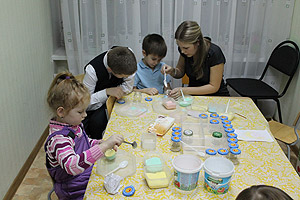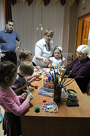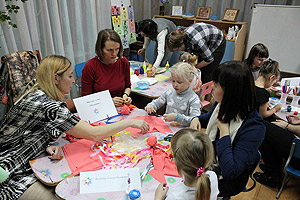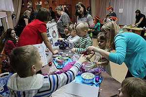 Настоящая Мастерская чудес! Разнообразные материалы: бумага, пластилин, ткани, пряжа, картон, макаронные изделия, вата, проволока, соль, глина и даже воздушные шары под умелым руководством Мастера в руках детей и родителей превращались в игрушки, новогодние открытки, рисунки с причудливыми узорами, елочные украшения, оригинальные сувениры.