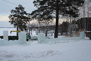 В городском парке Снежинска полным ходом идёт строительство новогоднего городка. Контроль осуществляет МКУ «Служба заказчика по строительству и ремонту». Как рассказал на аппаратном совещании 21 декабря директор учреждения А.А. Борисов, работа выполняется в срок. На сегодняшний день на 100 % заготовлен лёд, на 85 % выполнен монтаж ледяных блоков для изготовления скульптур и игровых комплексов, завезены ёлки для сборки главной новогодней ели. Сейчас начинается художественная обработка льда.