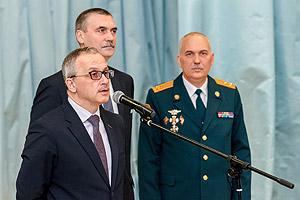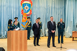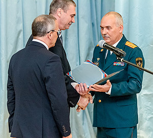 От лица руководства Снежинского городского округа сотрудников МЧС с юбилеем и присвоением очередных званий поздравили заместитель главы города О.П. Карпов и глава администрации И.И. Сапрыкин.