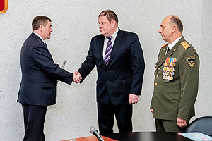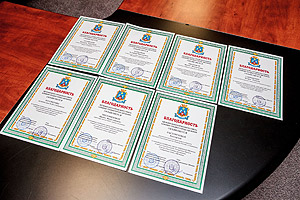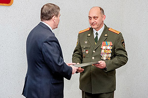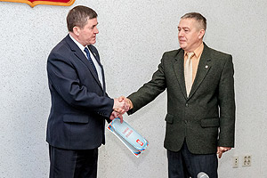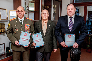 Сегодня традиционная пятничная встреча со СМИ началась с церемонии награждения. Дело в том, что 27 декабря, в профессиональный праздник – День спасателя, отмечается 25-летие МЧС России. Глава города А.Н. Тимошенков, который сам 17 лет стоял у истоков создания в нашем городе Управление по делам ГО и ЧС, а затем и Службы спасения, поздравил с этой почётной датой сильных и мужественных людей, посвятивших свою жизнь обеспечению безопасности и предотвращению чрезвычайных ситуаций. Почётной грамотой главы награждены начальник Управления по делам ГО и ЧС В.В. Жидков и его заместитель А.В. Карионов, Благодарностью – старший инспектор М.А. Чеботарёв.