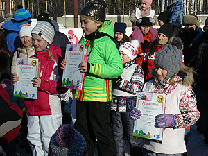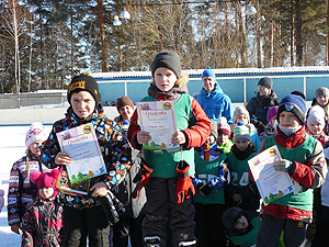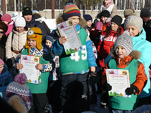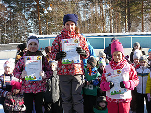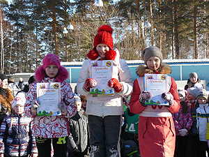Дети, занявшие призовые места, были награждены памятными призами. Все участники спортивного мероприятия поощрены сладкими призами (шоколадом).