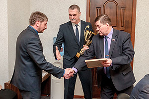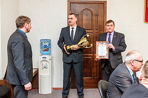 С приятного события началось аппаратное совещание в администрации города 28 марта. Снежинск занял I место в областном конкурсе на лучшую организацию физкультурно-спортивной работы среди муниципальных образований Челябинской области II группы в 2015 году. Глава города Анатолий Тимошенков и глава администрации Игорь Сапрыкин вручили исполняющему обязанности начальника Управления по зизической культуре и спорту Снежинска Андрею Куршеву грамоту министерства по физической культуре и спорту Челябинской области и кубок. При этом глава города Анатолий Тимошенков пожелал руководству снежинского спорта внедрять новые подходы в работе, создавать условия для подготовки большего количества мастеров и перворазрядников, а самое главное, направлять все усилия на развитие детского спорта. В свою очередь, глава авдминистрации Игорь Сапрыкин призвал УФиС стремиться к новым достижениям, а также как можно скорее минимизировать последствия неприятной ситуации со СДЮСШОР по гандболу.