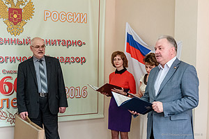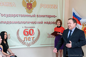 1 апреля 2016 года исполняется 60 лет со дня образования государственной санитарно-эпидемиологической службы ФМБА России в городе Снежинске. Поздравить коллективы Межрегионального управления № 15 ФМБА России (руководитель Виктор Романов) и ФГБУЗ «Центр гигиены и эпидемиологии № 15 ФМБА России» (главный врач Елена Вылегжанина) пришли глава города Снежинска Анатолий Тимошенков и глава администрации Игорь Сапрыкин. Они отметили огромный вклад санитарно-эпидемиологической службы в жизнеобеспечение Снежинска, а также вручили ряд наград.