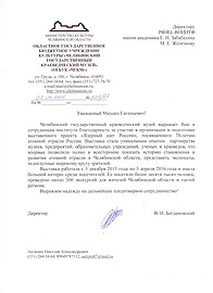 13 апреля в ходе рабочей поездки в Снежинск заместителя директора по научно-исследовательской работе ЧГКМ Николая Антипина и заведующего отделом природы ЧГКМ Эдуарда Шайгородского организаторы выставки вручили музеям-партнерам благодарственные письма и книги.