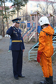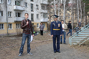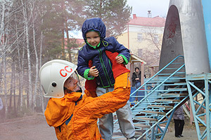Интересной акцией – исторической реконструкцией – отметил Снежинск 55-летие первого полёта в космос. Действо происходило в субботний день, 16 апреля, в одном из дворов города, возле детского игрового комплекса «Ракета».