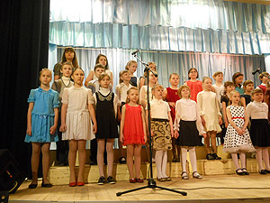 Солисты и хор 2-4 классов, наряду с классическими произведениями, исполнили авторскую песню Татьяны Науменко на стихи Кожемякина «Фиолетовый фрегат».