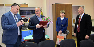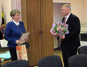 Начальник Управления физической культуры и спорта Людмила Германовна Панова также поздравила юбиляра, вручила благодарность Управления и памятный подарок.