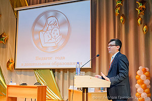 Наконец на сцену для объявления победителя поднимаются: Александр Игоревич Кузнецов, министр образования и науки Челябинской области, и Анатолий Николаевич Тимошенков, глава города Снежинска. Здесь же и все участницы финала. Вскрывается конверт, и – абсолютным победителем восьмого областного конкурса «Педагог года в дошкольном образовании» становится музыкальный руководитель из г. Копейска Миронова Евгения Геннадьевна. Именно она будет представлять область на Всероссийском конкурсе «Воспитатель года».
