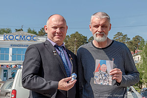 Прощаясь с городом, гость поблагодарил главу города Анатолия Тимошенкова за радушный приём, выразив искреннее восхищение Снежинском и его жителями. Теперь частичка Снежинска будет и в космосе: Олег Германович пообещал взять в очередной полёт маленькую фигурку Снежика.