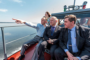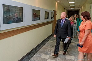 Вчера Олег Германович совершил экскурсию по Снежинску, в том числе по его водным просторам на военном катере, возложил цветы к памятникам, побывал в музее, дал пресс-конференцию СМИ, встретился со студентами в СФТИ НИЯУ МИФИ, пообщался с известными горожанами.