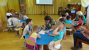 Три команды старших дошколят, поразмышляв обычную «взрослую» минуту, отвечали на вопросы, которые в реальном времени транслировались в видеоконференции. Ничуть не смущаясь перед видеокамерой, шестилетки щёлкали мудрёные вопросы, словно орешки.
