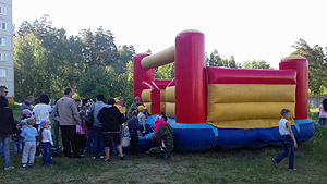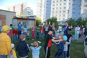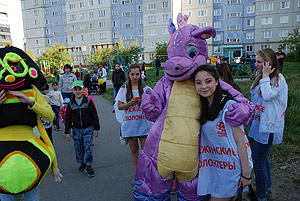 На спортивной и игровой площадке у домов по ул. Забабахина, 11-13 родители и дети участвовали в спортивных состязаниях, веселой эстафете, катались на веломобилях, а самые маленькие смогли попрыгать на батуте. Дети вместе пели и танцевали, а потом с удовольствием угощались чаем, булочками и сладостями. И, конечно, самые активные участники не остались без призов и подарков.