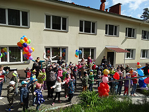 Первыми детей поздравили родители, вручившие им подарки для группы. Затем дети были приглашены на праздничный концерт. Вместе с клоунессой Ириской и пчелой Майей дети пели и танцевали, заводили «каравай», запускали шары в небо.
