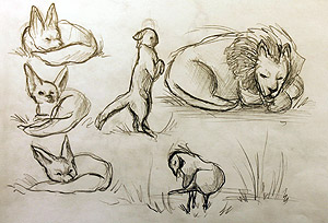 В процессе такой шуточной беседы наши юные художники знакомились с анатомией диких животных, характерными особенностями фактур шерстяного и перьевого покрова пушистых и пернатых.