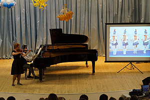 Исполнение разнохарактерных и разножанровых произведений сопровождалось яркой презентацией, которую подготовили сотрудники школы Наталья Свиридова и Ольга Шиндина.