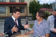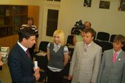 Затем в программу визита Губернатора были внесены небольшие коррективы: Михаил Юревич заехал в городскую библиотеку. Здесь он посетил выставку рисунков детей с ограниченными возможностями под названием «Вижу сердцем», посвященную 65-летию Победы, и оставил ребятам наборы красок.