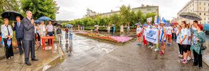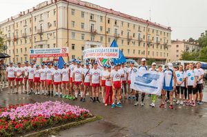 Бодрая музыка, развевающиеся флаги и группа спортсменов в яркой форме – 28 июля от бульвара Циолковского стартовал легкоатлетический пробег «Снежинск-Саров». На мероприятии царило приподнятое настроение, которое не омрачил сильный и продолжительный дождь.