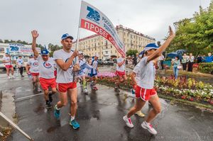 И вот, глава администрации Снежинска Игорь Сапрыкин даёт старт из сигнального пистолета. Звучит дружное «Ура!», команда устремляется вперёд. Им предстоит преодолеть около полутора тысяч километров пути. Участники пробегут через многие города, а опасные и загруженные участки автодорог проедут на автобусе. Завершится пробег 2 августа в Сарове, в день торжественных мероприятий в честь юбилея ядерного центра.