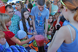 Всех остальных гостей праздника ждало бесплатное арбузное угощение, которое заметно освежило и придало бодрости. В общей сложности было съедено более 350 кг арбузов.