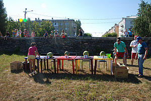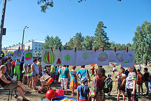 Праздник начался с приветствия самых важных гостей – активных снежинских малышей и их родителей. Для них организаторы подготовили спортивные соревнования, направленные на развитие быстроты реакции, ловкости и поднятия командного духа. Никто из юных участников не остался без приятного подарка. А те ребята, кто больше склонен творить, проявили свои таланты в умении рисовать арбузы на бумаге и на асфальте. Красочные рисунки украсили вход в ПКиО, а самые удачные из них принесли своим художникам победу в конкурсе рисунков «Арбузная галерея».