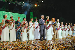 Торжественность происходящего на сцене поражало. Всё было по высшему разряду: великолепное освещение сцены, радужная череда потрясающей красоты костюмов, заразительно весёлые танцы, лирические песни – и всё это на фоне красочных слайдов. Огромное жизнелюбие, доброта, исходящие от участниц конкурса, буквально притягивали зрителя, наполняя позитивной энергетикой. Ну а лучезарность их улыбок заставляла улыбаться в ответ многотысячных гостей праздника.