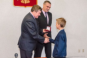 Ещё одни герои дня получили награды от руководителей города за победу на всероссийских соревнованиях по судомодельному спорту «Кубок Севастополя». Победителю соревнований – ученику гимназии № 127 Юрию Воронову вручили наручные часы с символикой Снежинска, его наставнику Евгению Коробейникову - цветы, а Татьяне Ишимниковой, инструктору по физической культуре Дворец творчества детей и молодёжи, – Почётную грамоту главы и денежную премию.
