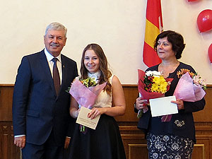 Открыл церемонию награждения Владимир Мякуш: «В системе поддержки талантливой молодежи области значительное место занимают стипендии Законодательного Собрания. Этим самым мы демонстрируем важность воспитания молодежи, ведь они - будущее региона, будущее страны. Наше будущее должно быть грамотным, образованным и патриотичным. Традиция эта давняя и предполагает ежегодное поощрение 185 лучших студентов и аспирантов. Стипендия - это вклад Законодательного Собрания в молодое поколение и знак признания тем преподавателям, которые готовят таких талантливых специалистов».