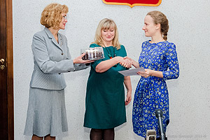Директор центра занятости населения г. Снежинска Степанова Оксана Анатольевна наградила лучших работодателей по временному трудоустройству несовершеннолетних в этом году: