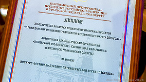 Автономная некоммерческая организация «Концертное объединение – Снежинская филармония» (город Снежинск) вошла в число победителей XII Открытого конкурса социальных программ/проектов «12 гражданских инициатив Уральского федерального округа». Высокую награду Наталия Воронова и Елена Бугаенко получили за авторский проект «Конкурс-фестиваль духовно-патриотической песни "Лествица"».