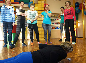 Участницы тестирования, от которых, к слову, и была проявлена инициатива выполнить нормы ГТО, приступили к зальным дисциплинам: наклон вперед из положения стоя, прыжок в длину с места, сгибание и разгибание рук в упоре лежа на полу, поднимание туловища из положения лежа на спине.