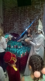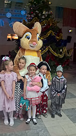 120 детей в красочных карнавальных костюмах побывали на новогоднем празднике, стали активными участниками представления со сказочными героями, Дедом Морозом и Снегурочкой, анимационными ростовыми куклами героев мультфильмов, водили хоровод вокруг новогодней красавицы Ёлки, играли в игры.