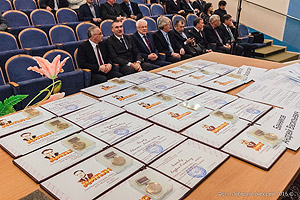 Исполняющий обязанности главы Снежинского городского округа Олег Карпов и глава администрации Игорь Сапрыкин приняли участие в церемонии вручения премий молодым сотрудникам РФЯЦ-ВНИИТФ.