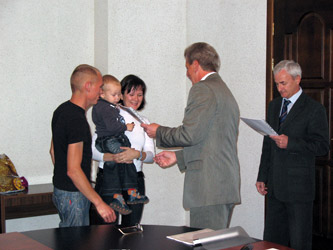 Участников подпрограммы «Оказание молодым семьям государственной поддержки для улучшения жилищных условий в городе Снежинске» городской целевой программы «Доступное и комфортное жилье – гражданам России в городе Снежинске» на 2008-2010 годы поздравил исполняющий обязанности главы администрации города В. В. Знаменский.