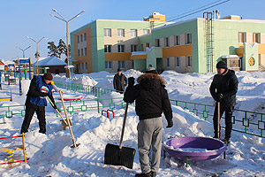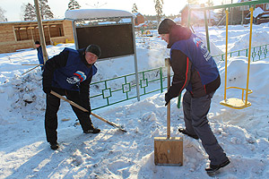 Субботним утром 4 февраля на территории нового детского садика № 12 «Звёздочка» кипела работа: активисты «Единой России», как члены партии, так и сторонники – Дмитрий Васильев, Алексей Мартынов, Александр Зинченко, Алексей Курочкин, Вячеслав Бушуев, по приглашению заведующего детским садом № 12 Владимира Шарова, помогали убирать снег с участка.