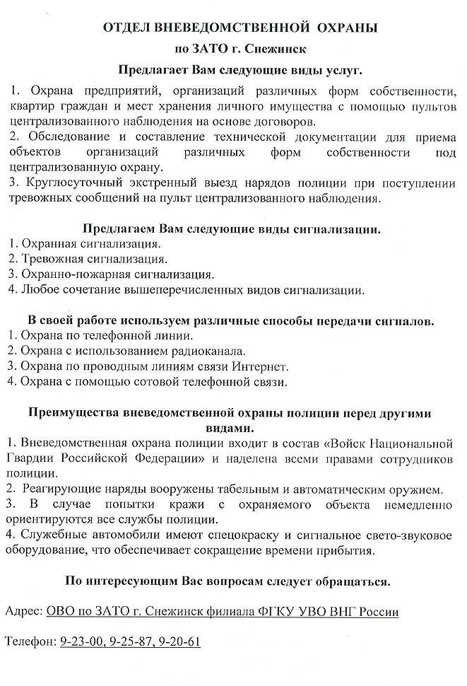 - Отдел вневедомственной охраны по ЗАТО г. Снежинск