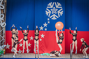 12 июня празднование 60-летия Снежинска продолжилось на стадионе «Комсомолец» в Парке культуры и отдыха. Снежинцев не испугала дождливая погода, ведь программа, подготовленная творческим коллективом КО «Октябрь», была насыщенной и интересной: