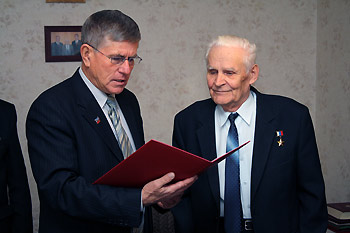 Позднее Михаил Железнов поздравил Героев Социалистического Труда и их родственников: Василия Федоровича Ручкина (звание присвоено в 1959 году), Евгения Николаевича Аврорина (звание присвоено в 1966 году) и Аллу Ивановну Литвинову, вдову Бориса Васильевича Литвинова (звание присвоено в 1981 году).