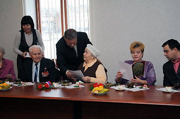 Прием проходил в теплой обстановке, с чаепитием. Глава города Михаил Железнов, вручая приглашенным подарки, цветы и книги Бориса Васильевича Литвинова, сказал что снежинцы гордятся своими земляками, имеющими такое почетное звание. Эти имена – живая история нашей страны. Их мужество и героизм – достойный пример для подрастающего поколения.