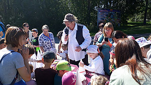 В пятницу гостей Фестиваля на Зеленой поляне ожидало увлекательное интерактивное представление «Где-то на диком западе» (4+). В 18:00 актеры Озёрского театра драмы и комедии «Наш дом» показали снежинским малышам спектакль по мотивам известных сказок Дж. Харриса. На сцене развернулся небольшой сказочный вестерн – вечное противостояние коварного Братца Лиса и хитрого Братца Кролика. Главные герои на протяжении всего действа постоянно находились в движении: прыгали, танцевали, устраивали гонки и в то же время успевали общаться с маленькими зрителями. Каждая новая сцена требовала участия малышей, и актеры активно привлекали ребят и старались вовлечь в игру как можно больше зрителей. Благодаря такому формату представления малыши были вовлечены в действие сказки, их внимание было приковано к сцене на протяжении всего представления. Всего спектакль увидело около 50 детей. Все зрители с большим интересом наблюдали за представлением, ведь сюжет был довольно прост и понятен даже самым маленьким снежинцам.