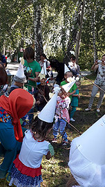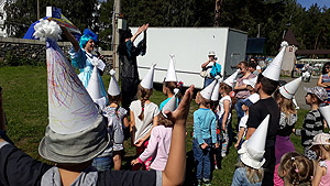 В субботу, 19 августа, Зеленая поляна превратилась в сказочный мир из сказки А. Толстого «Золотой ключик, или Приключения Буратино». В 11:00 малышей встречали главные герои всеми любимой сказки: папа Карло, пудель Артемон, лиса Алиса, кот Базилио, Мальвина и черепаха Тортилла.
