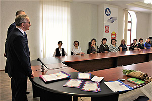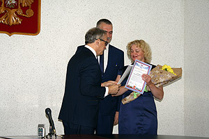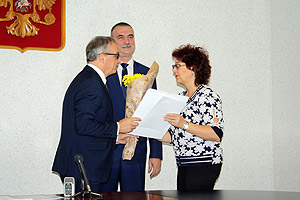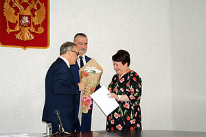 Глава города Снежинска Игорь Сапрыкин и председатель Собрания депутатов Олег Карпов вручили Благодарности следующим сотрудникам дошкольных учреждений города Снежинска: заместителю заведующего по учебно-воспитательной работе МБДОУ № 15 Ирине Ворониной, главному бухгалтеру МАДОУ № 29 Наталье Демидкиной, музыкальному руководителю МБДОУ № 26 Светлане Егоровой, старшему воспитателю МБДОУ № 15 Ольге Карамышевой, старшему инспектору по дошкольному воспитанию Нине Крючковой.