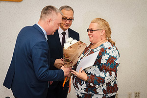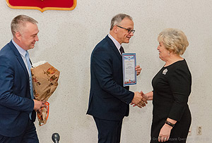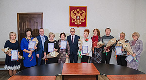 Сегодня в администрации города Снежинска состоялось награждение Благодарностью партии «Единая Россия» педагогических работников в связи с профессиональным праздником. За высокий уровень профессионализма, добросовестное отношение к труду и преданность профессии, за личный вклад в воспитание подрастающего поколения Южного Урала и в связи с празднованием Дня учителя объявлена благодарность: социальному педагогу школы № 125 Елене Владимировой, председателю городской ПМПК Ольге Кузьминой, заместителю начальника Управления образования Наталье Лазуренко, директору школы № 135 Ирине Миловидовой, заместителю начальника Управления образования Артуру Мухитдинову, директору школы № 125 Валентине Овсянниковой, учителю школы № 135 Татьяне Орловой, начальнику отдела дошкольного образования Управления образования Ларисе Шмелевой, ведущему бухгалтеру-ревизору Управления образования Наталье Шаталовой, учителю гимназии № 127 Елене Ячевской. Благодарность за подписью секретаря челябинского отделения партии «Единая Россия» Виктора Мякуша вручили исполняющий обязанности главы города Дмитрий Востротин и председатель Собрания депутатов Олег Карпов.