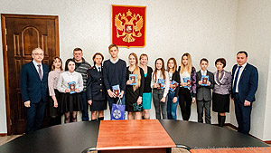 Свой первый главный документ получили: Степан Девятков, Вероника Обарчук, Александра Котельникова, Мария Матвеева, Тимофей Котов, Анастасия Босенко, Елизавета Смирнова. Вместе с документом им подарили Конституцию РФ, ежедневники и календари.