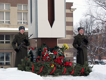 Возле памятника снежинцам, погибшим в локальных воинах, состоялся торжественный митинг с участием представителей администрации, правоохранительных органов, военнослужащих в/ч 3468, участников боевых действий в Афганистане и других «горячих точках», родителей ребят, погибших при исполнении интернационального долга, ветеранов Великой Отечественной войны, кадетов, учащихся школ города и горожан.