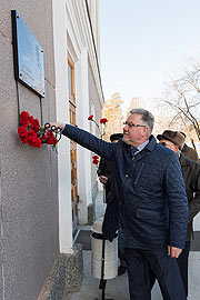 К юбилею было приурочено открытие мемориальной доски на фасаде здания, где он трудился. На торжественную церемонию собрались ветераны, сотрудники КБ, руководители предприятия.