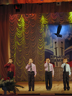 «Крылья памяти» – так символично называется конкурс. Эти «крылья» перенесли присутствующих в далекие суровые годы, годы Великой Отечественной войны, в тревожные годы интернациональных конфликтов, в годы испытаний для нашей страны, и вместе с тем – годы надежды, любви и веры в светлое завтра.