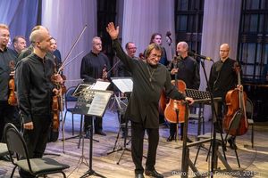 После рассказа об истории создания и становления ансамбля, получившего всемирную известность, и о произведениях концертной программы, на сцене свершилось чудо! Это было настоящее торжество госпожи Симфонической Музыки! Великолепное звучание скрипок, альтов, виолончелей в произведениях Свиридова и Кузьмы Бодрова под чутким руководством Маэстро!