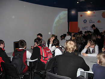 В рамках программы ребята посмотрели образовательный фильм «Путешествие в мир атома». Не покидая своего кресла, ребята смогли побывать на луне и на Солнце, в Антарктиде и тропиках, посмотрели на атомную станцию с высоты птичьего полета и своими руками собрали атомный реактор, увидели цепную реакцию и оказались на глубине 400 м под землей. Эта программа помогла нашим школьникам получить ответы на вопросы: